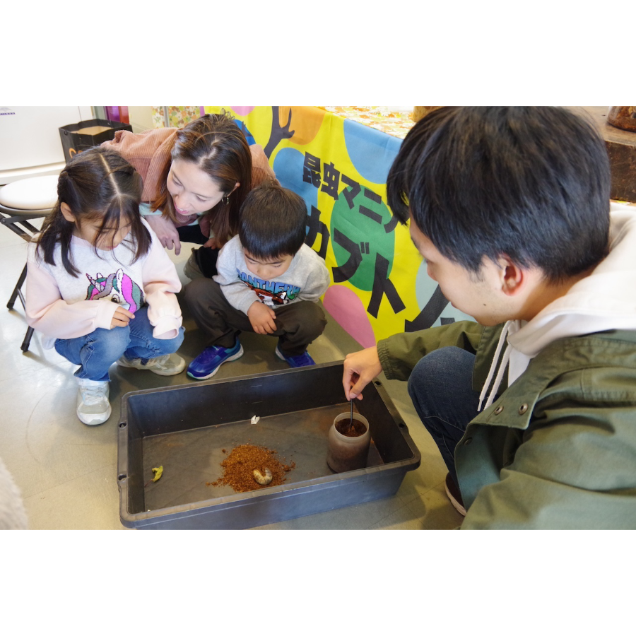 子供達が、楽しそうに幼虫に触れ合っていました。昆虫の冬の姿を観察して、これからどんなに変化していくのか?色々聞いていましたね。