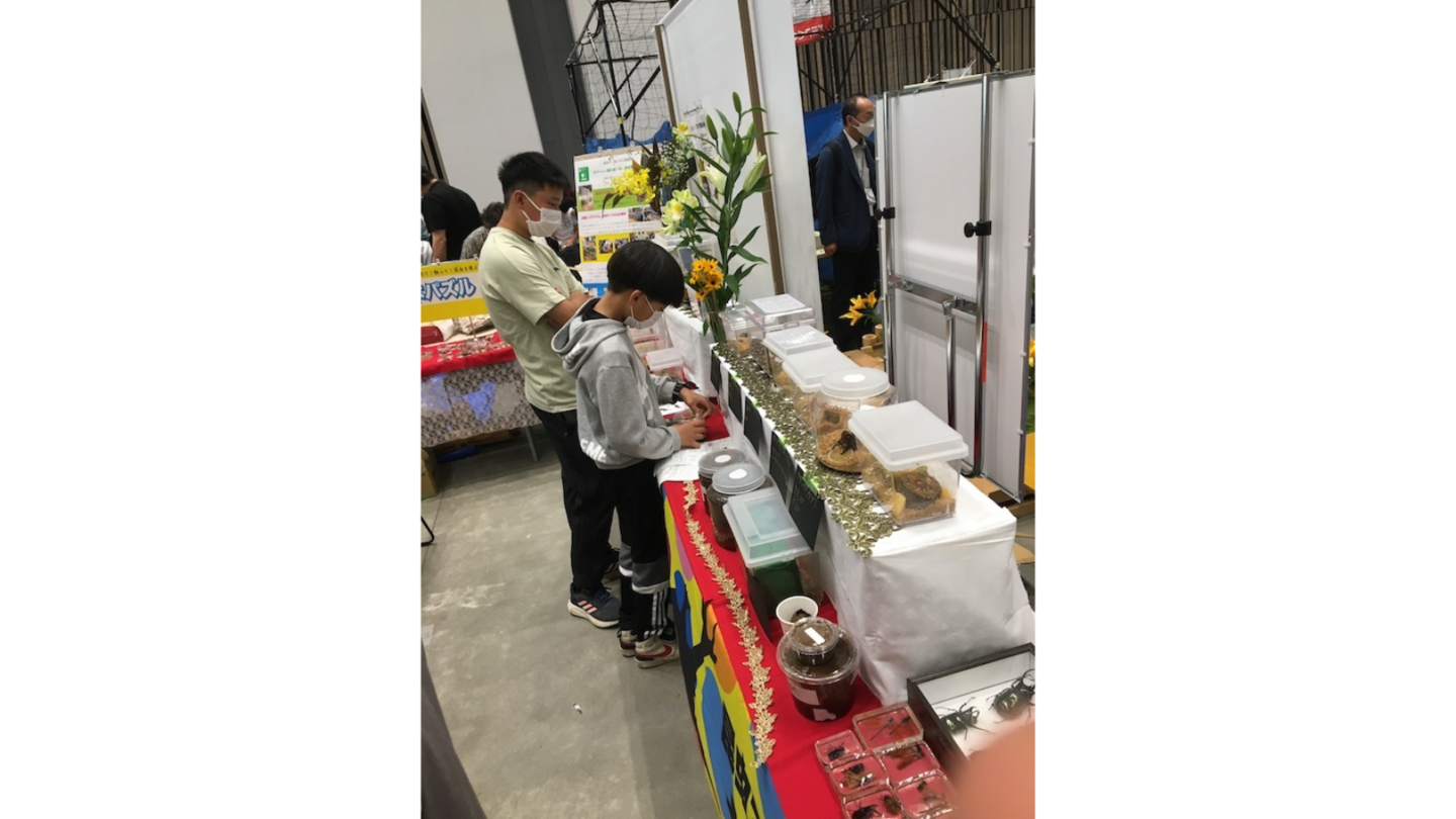 ファミーユでは、年に3回開催している「カブトムシ・クワガタ展示会」。今回の環境フェスティバルで、今までの活動を展示してきました。