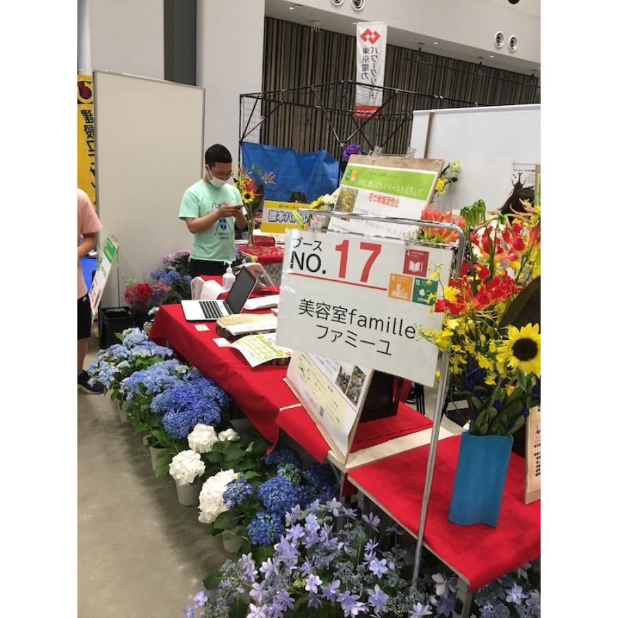 2023 八王子環境フェスティバルの美容室ファミーユ ブースの展示の様子