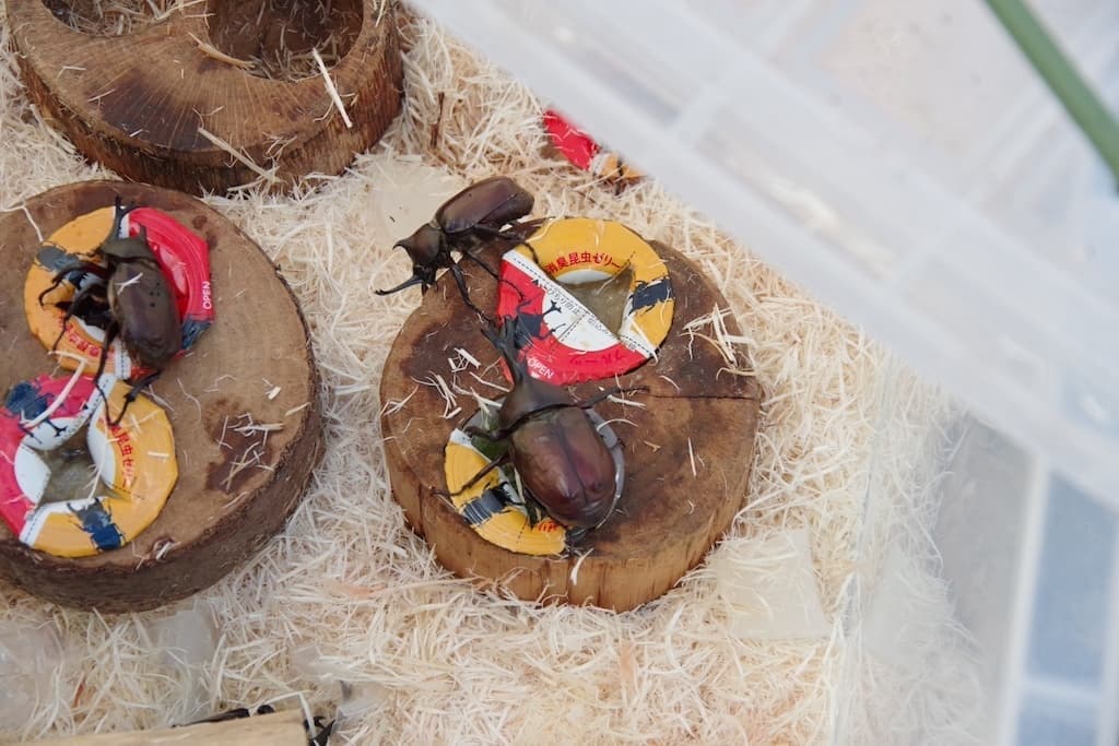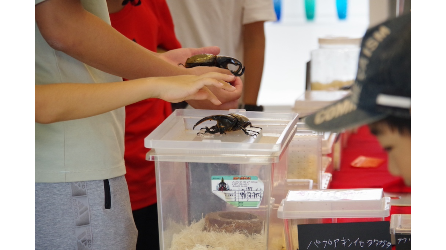 ファミーユ店内は、昆虫展示!色々なカブトムシ・クワガタがいっぱい!