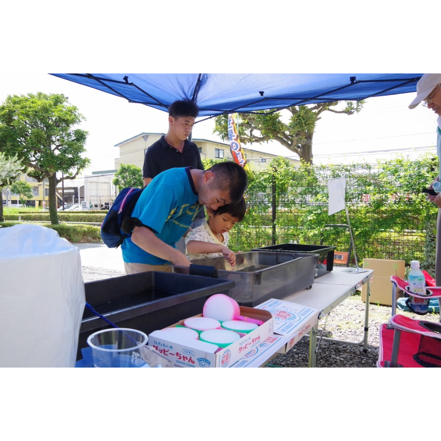 昆虫やメダカに触れ合いながら、笑顔がいっぱいでした。今年も「夏の良い思い出に」なりました。