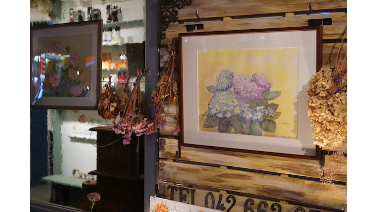 商店の前に「水彩画がある」ちょっと足を止めて 見てみよう!