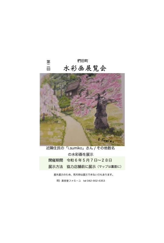 椚田町 展覧会は、地域の商店施設の空いているスペースを活用して「絵を展示」日常の散歩や買い物途中に、街中で絵を楽しめるように、地域住民と地域の店舗・施設が協力して開催しています。