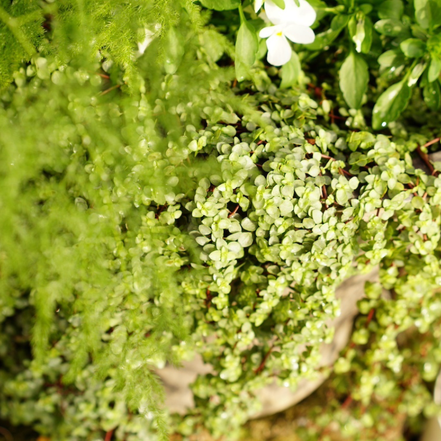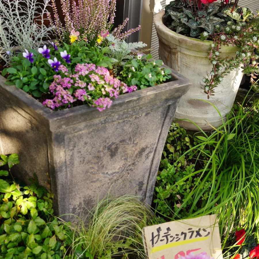 隣同士の美容室と学習塾の「空きスペース」を活用してガーデンを作っています。